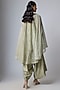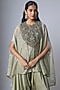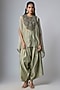 Featuring a blush green kaftan in crushed tissue base. It is paired with cotton satin pants and a cotton lycra bustier. Accentuate it with stud earrings, a polti bag and juttis for festive occasions or cultural ceremonies.