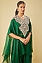 Bottle Green Silk & Organza Resham Work Kaftan Set