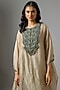 Featuring a champagne kaftan in crushed tissue base. It is paired with cotton lycra pants and a cotton satin inner. Accentuate it with gold earrings and embroidered juttis for a stylish ensemble, ideal for festive celebrations, family functions or evening gatherings.