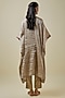 Featuring a champagne kaftan in tissue base with dori work. It is paired with cotton satin pants. Accentuate it with statement jewellery and embellished heels for family celebrations or pooja ceremonies.