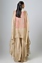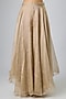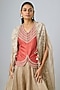 Featuring a champagne jacket in tissue base. It is paired with sharara pants and a silk orange blouse having dori work. Accentuate it with statement earrings and heels for pre-weddings ceremonies.