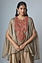 Featuring a champagne kaftan in tissue base. It is paired with pants and an inner. Accentuate it with stud earrings, a polti bag and juttis for festive occasions or mehendi ceremonies.