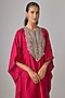 Featuring a cherry red kaftan in silk base with dori work. It is paired with cotton satin pants. Accentuate it with dangler earrings and heels for festive wear or wedding ceremonies.