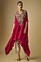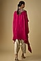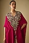 Featuring a cherry red kaftan in silk base with resham and dori work. It is paired with cotton satin pants. Accentuate it with zircon earrings and juttis for festive celebrations, daytime functions or pooja ceremony.