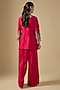Featuring a cherry red kurta in silk base with thread work. It is paired with pants. Accentuate it with polki earrings and block heels for a festive occasion, sangeet or mehendi ceremony.