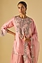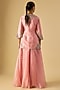 Featuring a dark flamingo pink kurta in silk base with maal work. It is paired with sharara pants and an organza dupatta. Accentuate it with minimal jewellery and heels for a festive look.