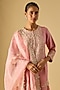 Featuring a dark flamingo pink kurta in silk base with resham work. It is paired with sharara pants and an organza dupatta. Accentuate it with minimal jewellery and heels for a festive look.