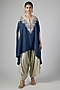 Featuring a dark purple kaftan in crushed silk base with resham work. It is paired with cotton satin pants. Style it with heels, dangler earrings and ponytail for a classy look. Ideal for a festive occasion or sangeet ceremony.
