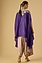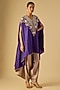Featuring a dark purple kaftan in crushed silk base with thread work. It is paired with cotton satin pants. Accentuate it with dangler earrings and heels for festive occasions or wedding ceremonies.