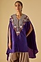 Dark Purple Crushed Silk Thread Work Kaftan Set
