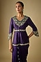 Featuring a dark purple peplum in chanderi base with thread work. It is paired with a modal satin skirt. Accentuate it with zircon jewellery and heels for festive gatherings or sangeet ceremony.