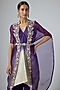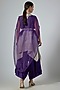 Featuring a dark purple cape in organza base with thread embroidery. It is paired with, an ombre silk handkerchief kurta, cotton satin pant and a belt. Accentuate it with kundan polki jewellery and block heels for festive occasion, haldi or family gatherings.