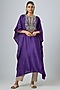 Featuring a dark purple kaftan in silk base with dori work. It is paired with cotton satin pants. Accentuate it with statement jewellery and heels for a festive occasion or cocktail ceremony.