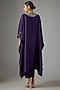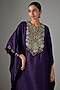 Featuring a dark purple kaftan in silk base with threadwork. It is paired with cotton satin pants. Accentuate it with statement earrings and heels for festive occasions.