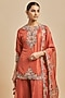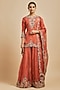 Featuring a deep orange kurta in silk base with dori and resham embroidery. It is paired with kalidar sharara pants and an organza dupatta. Accentuate with statement earrings and heels for any festive occasion or wedding ceremonies.