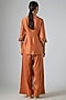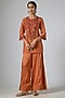 Featuring a deep rust kurta in silk base with thread embroidery. It is paired with pants. Accentuate it with kundan polki jewellery and block heels for festive occasion, pooja or family gatherings.