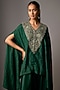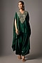 Featuring an emerald green kaftan in crushed silk base with thread work. It is paired with cotton satin pants. Style this set with dangler earrings and heels for a festive occasions, mehendi or sangeet ceremony.
