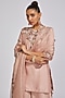 Featuring a flamingo pink kurta in silk base with thread and zardosi embroidery. It is paired with matching cotton satin sharara pants and an organza dupatta.