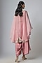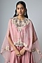 Featuring a flamingo pink cape top in organza base. It is paired with cotton satin pants and a cotton lycra bustier. Accentuate it with stud earrings, a polti bag and juttis for festive occasions or cultural ceremonies.