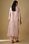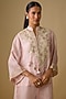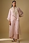 Featuring a flamingo pink jacket in organza base with resham work. It is paired with a russian silk inner and cotton satin pants. Accentuate it with zircon earrings and heels for festive occasions.