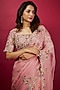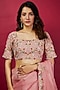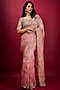 Featuring a flamingo pink saree in organza base with dori work. It is paired with a silk blouse having dori work. Accentuate it with statement earrings and heels for a festive occasion, engagement or haldi ceremony.