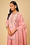 Featuring a flamingo pink kurta in silk base with resham and maal work. It is paired with sharara pants and an organza dupatta. Accentuate it with minimal jewellery and heels for a festive look.
