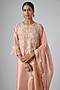 Featuring a flamingo pink kurta in silk base with resham and moti embroidery. It is paired with cotton satin pants and an organza dupatta. Accentuate it with kundan polki jewellery and block heels for festive occasion, pooja or family gatherings.