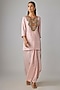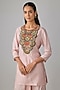 Featuring a flamingo pink kurta in silk base with thread work. It is paired with a skirt. Accentuate it with dangler earrings and heels for festive wear or wedding ceremonies.