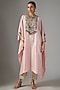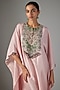 Featuring a flamingo pink kaftan in silk base with threadwork. It is paired with cotton satin pants. Accentuate it with statement earrings and heels for festive occasions.