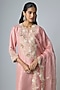 Featuring a flamingo kurta in silk base with resham and moti work. It is paired with cotton satin pants and an organza dupatta. Style it with wedges, diamond earrings and a sleek bun. Ideal for a festive occasion, sangeet ceremony or intimate pooja ceremony.