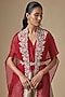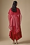 Featuring a fuchsia pink cape in organza base with thread and dori work. It is paired with an ombre silk handkerchief kurta, belt and cotton satin pants. Style this set with dangler earrings and heels for a festive occasion, wedding, sangeet or engagement ceremony.