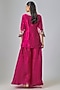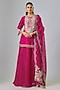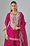 Featuring a fuchsia pink kurta in silk base with resham and maal work. It is paired with organza sharara pants and a dupatta. Accentuate it with statement earrings and heels for sangeet ceremonies.