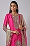 Featuring a fuchsia pink kurta in chanderi base with zari work. It is paired with organza sharara pants and an ombre dupatta. Accentuate it with statement jewellery and heels for any festive occasion or sangeet ceremonies .