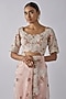Featuring an ivory saree in organza base with dori and resham work. It is paired with a silk blouse. Accentuate it with statement jewellery and heels for a wedding or engagement ceremony.
