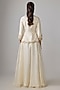 Featuring an ivory peplum in silk base with resham and mukesh work. It is paired with an organza sharara. Accentuate it with dangler earrings and heels for festive wear, family gatherings or intimate celebrations.