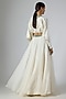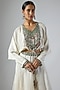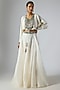 Featuring an ivory blouse in silk base with thread embroidery. It is paired with an organza skirt. Accentuate it with kundan polki jewellery and block heels for festive occasion, pooja or family gatherings.