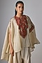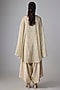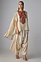 Featuring an ivory kaftan in tissue base with thread work. It is paired with a cotton lycra bustier and cotton satin pants. Accentuate it with stud earrings and heels for festive wear, daytime celebrations or wedding ceremonies.