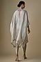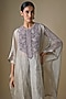 Featuring a lavender kaftan in crushed tissue base with thread work. It is paired with a cotton lycra inner and cotton satin pants. Accentuate it with zircon earrings and juttis for festive celebrations, daytime functions or pooja ceremony.