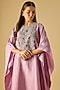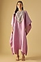 Featuring a lavender kaftan in silk base with maal and dori work. It is paired with cotton satin pants. Accentuate it with dangler earrings and heels for festive occasions or wedding ceremonies.