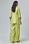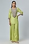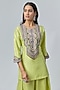 Featuring a lemon green kurta in silk base with thread embroidery. It is paired with pants. Accentuate it with polki stud earrings, mules and an embellished potli bag for festive celebrations, mehendi or family gatherings.