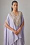Featuring a lilac kaftan in crushed silk base with moti and resham work. It is paired with cotton satin pants. Accentuate it with dangler earrings and heels for festive wear or wedding ceremonies.