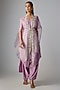 Featuring a lilac cape in organza base with resham and moti work. It is paired with a silk ombre handkerchief kurta, cotton satin pants and a belt. Accentuate it with dangler earrings and heels for festive wear or wedding ceremonies.