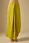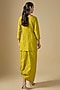 Featuring a lime green kurta in crushed silk base with thread work. It is paired with a dhoti skirt. Accentuate it with polki earrings and block heels for a festive occasion, mehendi or pre-wedding ceremonies.