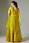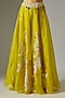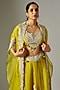 Featuring a lime green kalidar lehenga in organza base. It is paired with a silk blouse having resham and maal work, including a cape. Accentuate with statement jewellery and heels for a mehendi or wedding ceremony.