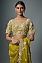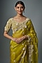 Featuring a lime green saree in organza base with resham and lampi embroidery. It is paired with a silk embroidered blouse. Accentuate it with statement earrings and heels for any festive occasion.