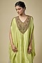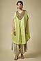 Featuring a lime kaftan in silk base with thread work. It is paired with cotton satin pants. Style it with heels, dangler earrings and ponytail for a classy look. Ideal for a festive occasion or sangeet ceremony.