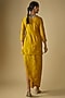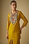 Featuring a mustard kurta in crushed silk base with dori work. It is paired with a dhoti. Accentuate it with kundan polki jewellery and heels for festive gatherings or haldi ceremony.