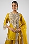 Featuring a mustard kurta in silk base with resham and maal embroidery. It is paired with organza sharara pants and an organza dupatta. Accentuate with kundan stud earrings, a potli bag and heels for a festive occasion, haldi or sangeet ceremonies.