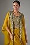 Mustard Organza Threadwork Cape Set