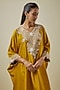 Featuring a mustard kaftan in silk base with resham work. It is paired with cotton satin pants. Accentuate it with statement jewellery and embellished heels for family celebrations or pooja ceremonies.